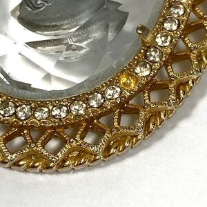 Intaglio Brooch Pin Oval Gold Tone Frame Rhinestones Large Flaw