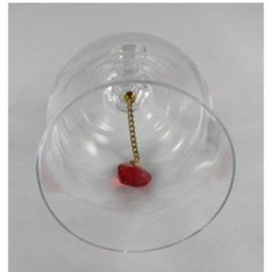 This is a lovely, etched, crystal glass bell with a red crystal heart-shaped clapper hanging from the inside by a gold chain. Etched on the outside of the bell is “I Love You.”