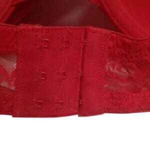 Inteco Intimates 40DD Bra Red Lace Underwire Adjustable Straps Rhinestone Accent