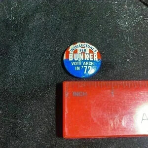 Intellectuals for Archie bunker button vote 1972 presidential campaign pin vintage.