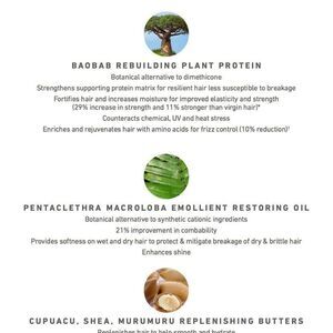 Fortifies hair by supporting the protein matrix and promoting moisture. Helps counteract chemical, UV and heat stress while enriching with amino acids for frizz control.