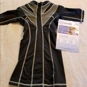 NOTE: THIS IS NOT NIKE BRAND. The brand is intelliskin. It is Black with silver stitching. Can be used for posture and performance wear. Lightly used and in "like new" condition. Small size and shirt is supposed to fit tightly. If you are unfamiliar with the intelliskin brand, look it up. It's great for super active athletes!