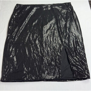 Intempo Sequin Tulip Skirt Side Split Fully Lined Women's Plus Size 3X Black
