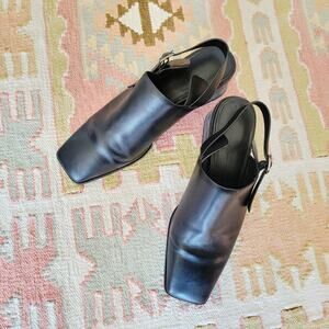 Cute slingback style heeled mules in vegan leather. Size 10. Inner logo foil has faded so its hard to see but the brand is Intentionally ______. In great co dition, some wear on sole. Adjustable ankle strap.