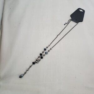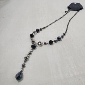 Inter American Faceted black and smoky grey crystal Stone lariat Necklace