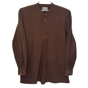 Inter American Trading Peasant Shirt Men's Size Large Brown Pin Tuck Long Sleeve