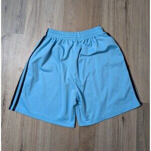 The product is a pair of Men's Soccer Shorts in blue, featuring an elastic waist with a drawstring for a secure fit. The shorts are unbranded but inspired by Futbol legend Messi and the Inter Miami team in Major League Soccer (MLS). Made in China, these shorts are an ideal choice for soccer fans looking to support their favorite team in style on and off the field.