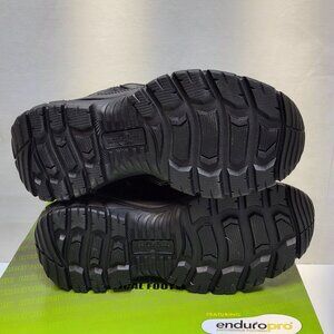 These Interceptor Litefast tactical boots, tailored for women, combine durability with comfort. Featuring an EnduroPro anti-fatigue footbed and EVA midsole, they ensure all-day wearability. The soft toe and slip-resistant outsole make them practical for various terrains, while the zippered side allows easy on-and-off functionality. The sleek black finish complements its rugged design