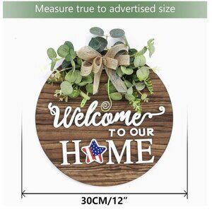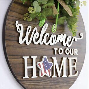 Interchangeable Seasonal Welcome Sign, Rustic Round Wood Wreath, Wall Hanging, Outdoor, Farmhouse, Porch, Spring, Summer, Fall, Holiday, Halloween, Christmas, High-Quality Wood, Artificial Green Plants, Home Decor.