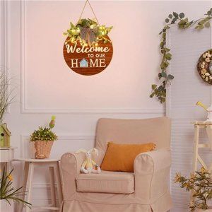 🧿Interchangeable Welcome Sign: You will get 1 wooden welcome sign, 4 seasonal wreaths (spring, summer, fall and winter) and 21 changeable icons (Santa Claus, pumpkin, snowman, rabbit, Christmas tree, sun, snowflake, house, heart, cake, sunflower, maple leaf, Easter egg, etc) for you to put in place of the 'O'.