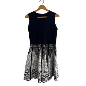 Interdee Paris Blue and White Sleeveless Fit and Flare Scoop Neck Dress Large