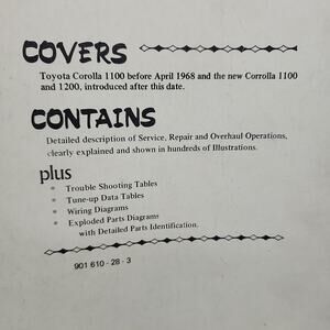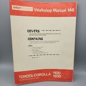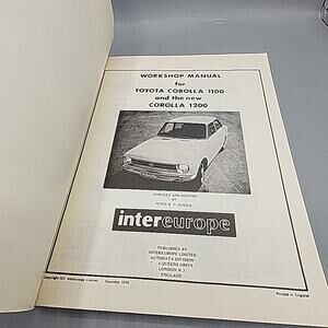 Intereurope Workshop Manual 146 Toyota Corolla 1100 1200 Printed 1970 Rare. Printed in London England. Fully intact in good condition. Ships quickly and securely.
