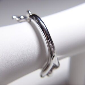 Interlocked Polished Silver Tone Bracelet Toggle Closure Minimalist Quiet Luxury