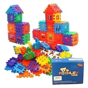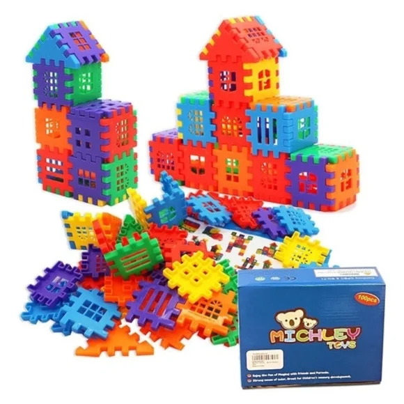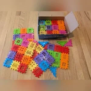 Plastic waffle building blocks. Blocks themselves in good condition. Original box fair (see pic).