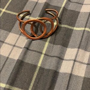 It is a black metal interlocking circles cuff bracelet that was sprayed in a copper design. 🔥🔥 5 for $30🔥🔥