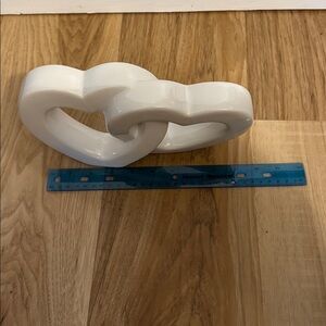 Elegant ceramic interlocking heart decor in a classic white finish. Perfect for adding a touch of love to any space.