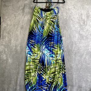 Intermission Size 14 Tropical Print Maxi Dress Beaded Halter