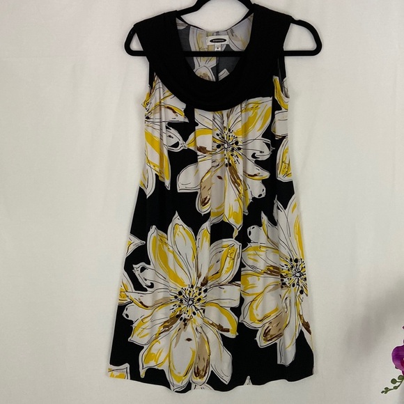 Intermission White Yellow and Black Dress Sleeveless With Pleats Size 6