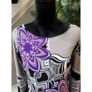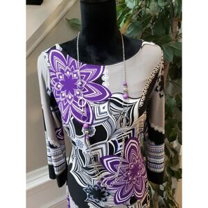 Intermission Women's Multicolor Round Neck Long Sleeve Knee Length Dress Size 12.