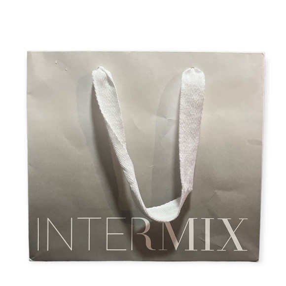 ๐Ÿ‘œ intermix white and silver paper bag ๐Ÿ‘œ 8 inches long ๐Ÿ‘œ about 9 inches wide ๐Ÿ‘œ lightly used