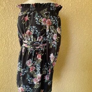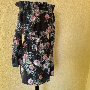 Intermix Black Floral Print Off the Shoulder Belted Mini Dress Size M