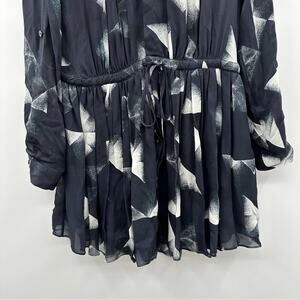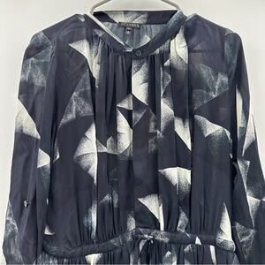 Intermix Black & White Printed Long Sleeve Button-Front Tie Mini Dress Sz S
