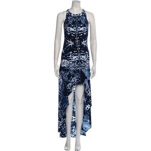 Intermix Blue Silk Printed High-Low Maxi Dress Women’s Petite Sleeveless Evening