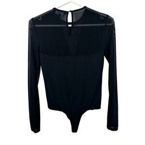 Intermix Bodysuit Womens Small Black V-Neck Sheer Mesh Long Sleeves