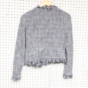 Intermix EUC Dark Navy & Off White Tweed, Fringe, Open-front Blazer