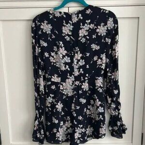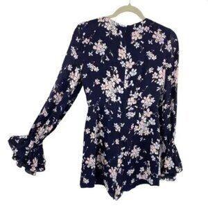 Intermix Silk Romper Thali Floral Print Navy Balloon Sleeve V-neck size 4