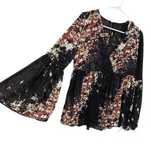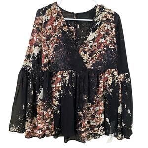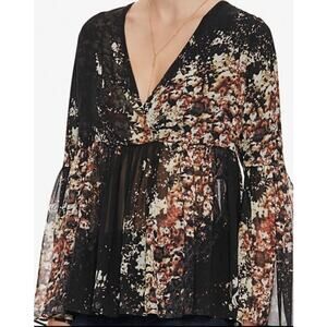 Intermix Kenai Babydoll Blouse Small 100% Silk Floral Sheer Boho Whimsigoth