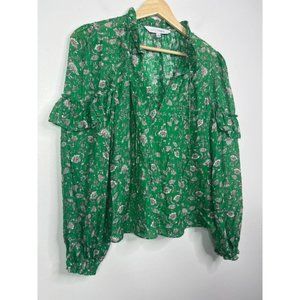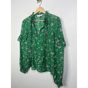 Intermix Marika Ruffled Fil Coupé Casual Blouse Women's Green. New without tag!