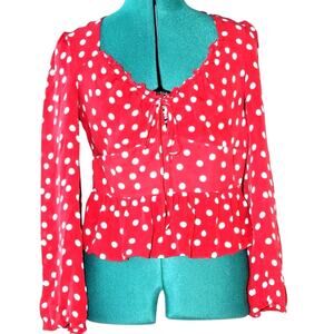 Intermix Red White Polka Dot Peplum Blouse Long Sleeve Coquette Women’s Size 4
