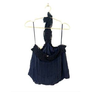 Intermix Ruffled & Pleated Black Chiffon Halter Top Blouse In Size P