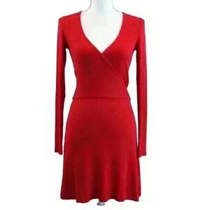 Intermix Serena Red Wrap-Front Rib Knit Mini Dress – Size P (Petite/Small)