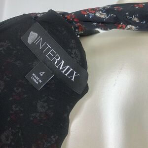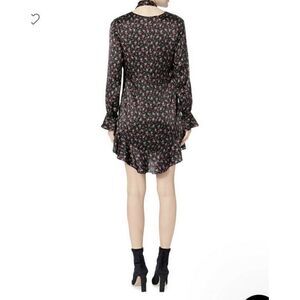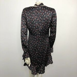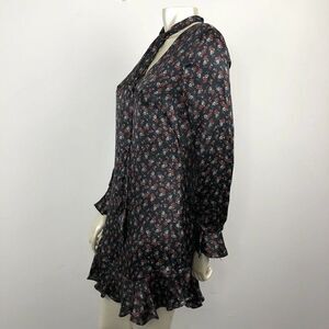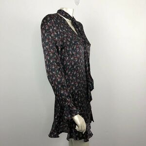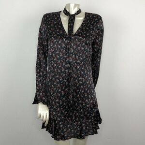 Intermix Serena Tie Neck Ruffle Shift Silk Dress in Black Floral Print. Size 4