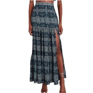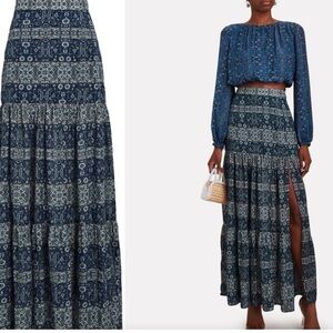 Intermix Silk Blend Aggie Tiered High Slit Maxi Skirt Blue Print Women’s
