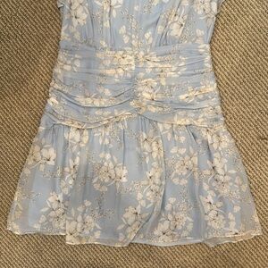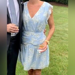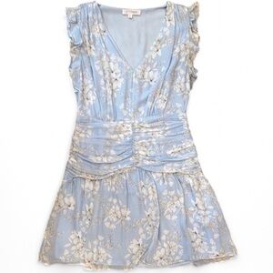 Intermix Silk Light Blue Floral Dress Ruched Waist Ruffle Sleeves size 6