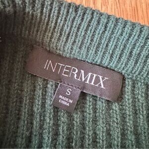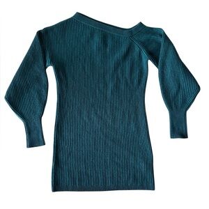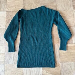 Intermix Wool Cashmere Dress Small Green Off Shoulder Puff Sleeve Mini Sweater