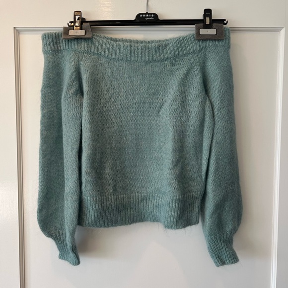 Off shoulder, celadon/seafoam, wool sweater size medium