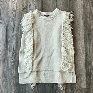 Intermix Sweater White Short Sleeve Wool and Cashmere Fringe Size Extra Small