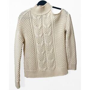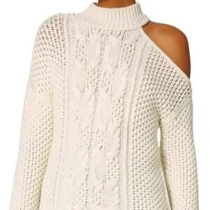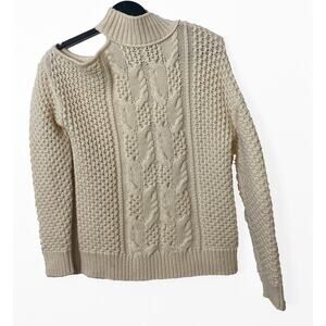 Intermix Women's Cold Shoulder 100% Wool Knit Sweater Cream Neutral Minimalist XS Capsule