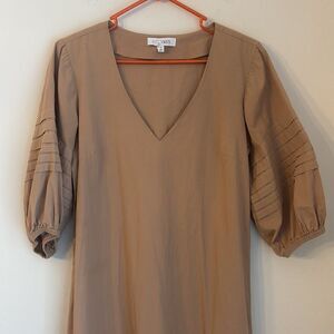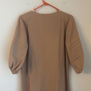 Minimal yet so chic! This dress is a closet staple just a beautiful tan/nude totally on trend color.