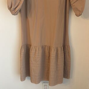 Intermix Womens puff short sleeve midi ruffle tan tiered prairie v-neck dress size 4 - runs oversized