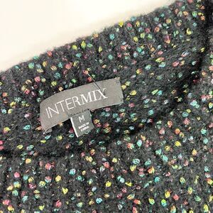 Intermix Wool Blend Sweater Womens Medium Tight Speckled Knit Puff Sleeve