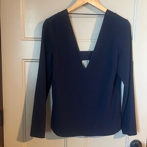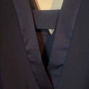 no flaws or signs of wear. cross bar in back and deep v cut. navy blue. 19 inches pit to pit, 24.5 inches long from shoulder