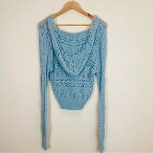 Y2K Intermix pale blue cashmere wool blend hooded sweater. Open weave. Slightly cropped. Size small