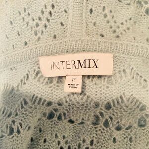 Intermix cashmere wool blend open knit pale blue hooded cardigan sweater. Small