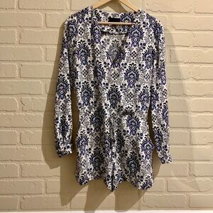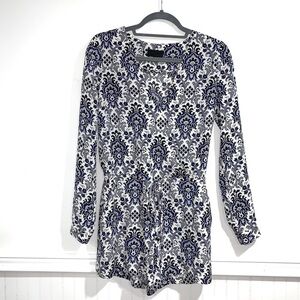 Intermix romper long sleeve drawstring silk jacquard print shorts