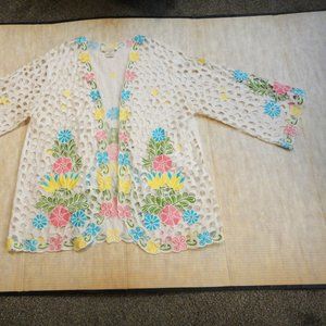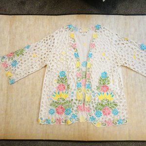International Apparel Mart Floral Jacket Beach Cover Up White 1X